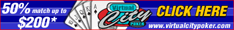 Virtual City Poker Tournaments: If you had asked me about Tournaments at Virtual City a couple of months ago, I would have told you that the site was all about the ring games, but low and behold, they introduce a multi-table tournament platform. The site has gone up and up since this, with player traffic shooting through the roof. They offer daily freerolls starting at $200 and going up to $3000 (Although you must have played in at least 50 raked hands to qualify for this one). They also run a couple of daily satellites that feed a big end of month tournament, where the prize is usually flights and entry fee into a major land based tourney (yes, we're talking the World Series of Poker or many of the WPT). Not bad on the back on a $15 buy in. In summary because of the tournament spread at Virtual City Poker, the ring games are getting better by the minute and the money is flowing right into my pocket.